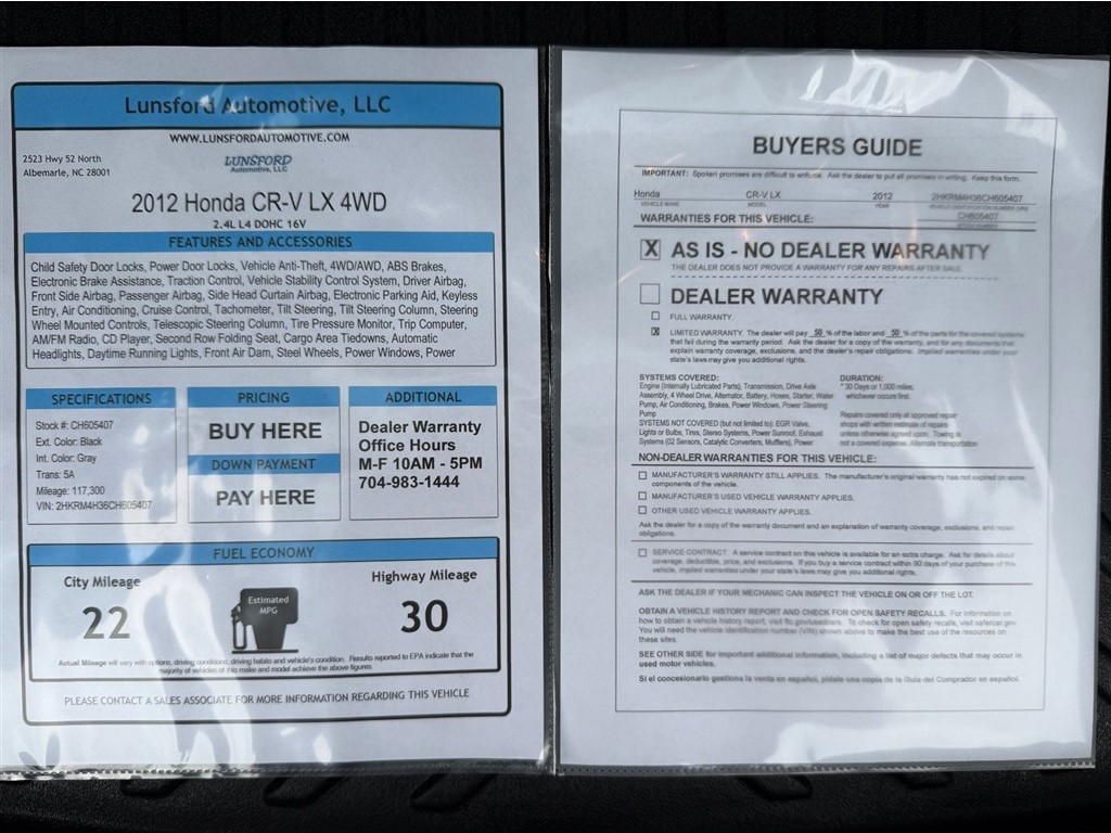 Lunsford Automotive attempts to provide accurate information on the inventory item listed above. The actual equipment may vary. Please confirm all vehicle options, accessories and prices with a sales associate to assure accuracy. This information is provided without representations or warranties of any kind, either expressed or implied. Prices do not include additional fees such as government fees and taxes, title and registration fees, finance charges, dealer document preparation fees, and emission testing