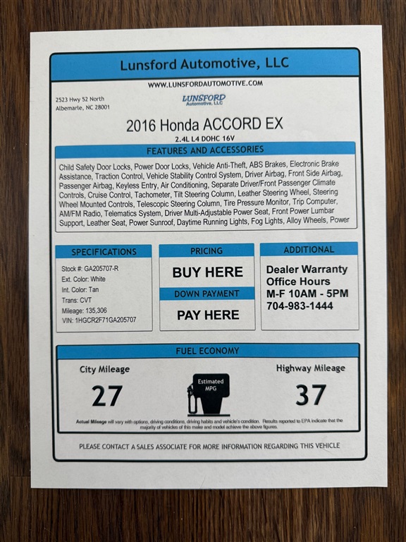 Lunsford Automotive attempts to provide accurate information on the inventory item listed above. The actual equipment may vary. Please confirm all vehicle options, accessories and prices with a sales associate to assure accuracy. This information is provided without representations or warranties of any kind, either expressed or implied. Prices do not include additional fees such as government fees and taxes, title and registration fees, finance charges, dealer document preparation fees, and emission testing